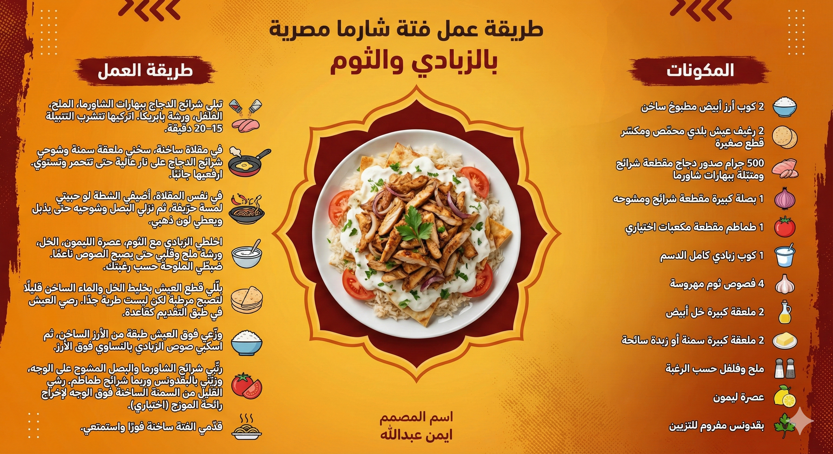 ولو جرّبتيها فتة شاورما مصرية هتلاحظي قد إيه خطواتها سهلة، ومع الوقت هتبقى من وصفاتك الأساسية. تقدري كمان تزودي بقدونس أو صوص طحينة لو بتحبي.